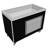 Duke HB3CM 46" Portable Mechanically-Assisted Cold Food Table - HeritageKeeping cold food items at a safe temperature is incredibly important in all foodservice environments. To ensure that cold food items stay safely chilled you may need something more than just ice, especially in hot or humid climates or for displays that will be left out for extended periods of time. In these cases the 46" Portable Mechanically-Assisted Cold Food Table - Heritage (HB3CM) from Duke is the perfect choice. This model features refrigerated coils and a condenser to maintain proper temperature. And don't be afraid to add the ice as well, it looks great and is easy to drain from this cold food table. Features : Six foot cord with plug, Heavy-gauge steel construction, Mechanically-assisted cold pan unit 40" x 19. 875" x 5" , Fully-insulated stainless steel ice pan with 1" brass drain and plug. Benefits: 300 series stainless steel top and ice pan for improved durability, Includes 5" diameter rubber swivel casters, two with locks, for easy relocation . Additional ConsiderationsThe body of this model can be finished in one of twelve powder coat colors available from Duke; contact a Product Expert for details at 1-877-877-4379.