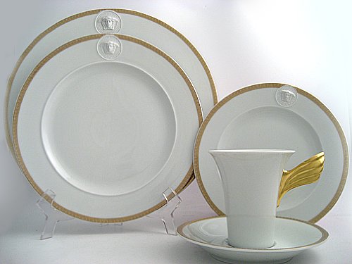 #Classic elegance with a fresh, cool ambience ¿ skilfully expressed in precious sophistication of white and gold by the Versace Milan studio. The head of the Medusa in bisque, delicately framed by a meandering band of gold, shows the special esprit of this simple and yet impressive composition to its best advantage. The Covered Vegetable in this series holds 54 ounces and comes in a Versace giftbox