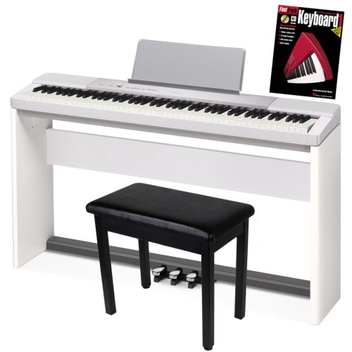 Casio Privia PX-150 88-Key Digital Piano Bundle with Furniture-Style Stand, 3-Pedal System, Bench, and Instructional Book - White?Bundle includes Casio Privia PX-150 88-Key Digital Piano in White, Furniture-Style Stand, 3-Pedal System, Bench, and Instructional Book. The new PX-150 represents a significant step in the continuing evolution of the Privia digital piano line. A combination of a new keyboard action and a powerful new sound engine provide a new level of detail, nuance and expression for a superior grand piano experience in the lightweight and stylish design that Privia is known for.