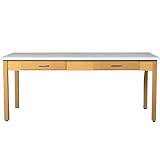 | ✚✚✚ Planning Desk (Almond Laminate) Sturdy desk. Works for art, planning, sewing and more. 1.25 in. almond laminate top. Two dovetailed drawers. Solid maple apron. 2.25 in. maple legs attached with 13 gauge steel corner braces. An earth-friendly UV finish. Made from solid maple and laminate. 72 in. W x 30 in. D x 30 in. H (140 lbs.)