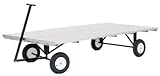 Constructed of 14 gauge welded steel undercarriage with a 5' x 10' aluminum planking deck. Spacing between aluminum planks allows water drainage. Both aluminum and wood cart have a welded steel axle assembled to deck and pneumatic tires for easy maneuverability.