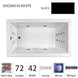 Jacuzzi ELA7242CRL4IWB Elara 7242 Salon Illuma Whisper RH BlackJacuzzi BathElara Collection Salon Spa CombinationDrop-In or Undermount 72"L x 42"W x 26"HRight DrainPump and Blower Location: Left16 total jets: - 4 fully adjustable TheraPro™ jets - 12 AccuPro™ back jets900 watt variable-speed heated-air blowerMulti-speed motorBottom air channelsElectronic airflow adjustabilityWave modeRapidHeat inline heaterIllumatherapy lighting systemJ4 Luxury ControlAutomatic purge (drain activated)Low-profile deckExclusive Tru-Level™ self-leveling base systemSlip-resistant bottomSome days call for an invigorating massage, others for a gentle caress, and still others a combination of both. For all of these days, there is one remarkable water retreat. Jacuzzi® Salon™ Spas combine the therapeutic power of the Luxury Whirlpool experience and the calm, effervescence of Jacuzzi Pure Air®. This is the ultimate home retreat from the speed of life.Available Accessories: TheraPro Jet Rings (D095827), Drain Kit (HP55827), Hand Rails (G864827), 21" Pillow (EK91959), 15" Pillow (C262959), Chromatherapy Light Kit (GD56000)