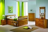 Full Captain's Bed Daybed with Trundle Bed and Storage Drawers - Honey Finish